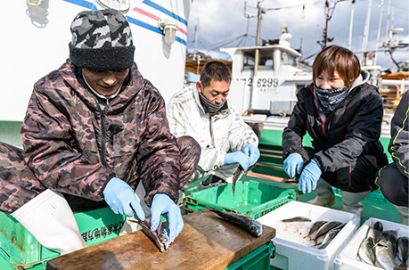 大卒のIターン組など地元出身ではない者や、若い船員が多いのも「萩大島船団丸」の特徴です。旧来の漁業にはないやりがいを求めたり、それぞれが夢や目標を持って船に乗っています。