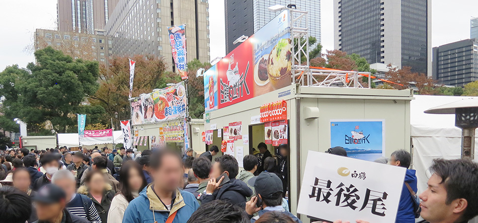 イベント初日は雨がぱらつくこともありましたが、2日目以降は晴天にめぐまれ、小さなお子様を連れたご家族や会社帰りのサラリーマン、ご友人グループなど、のべ約16万人のお客様にご来場いただき、「白鶴丸が行く 300ml オリジナルパッケージがついた限定セット」と旨みたっぷりの「泉だこ」を使った泉だこ旨煮・たこめしはイベント期間中に完売!ブースに足を運んでいただきました多くのお客様に感謝いたします。